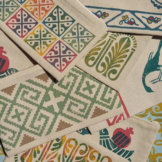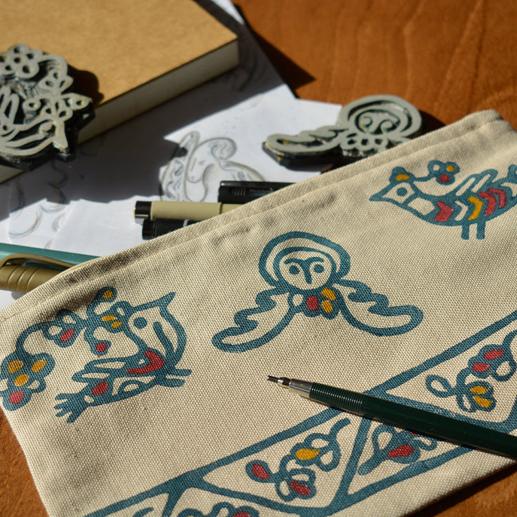 Block-printed cute pencil pouch - “Birds of Martvili”