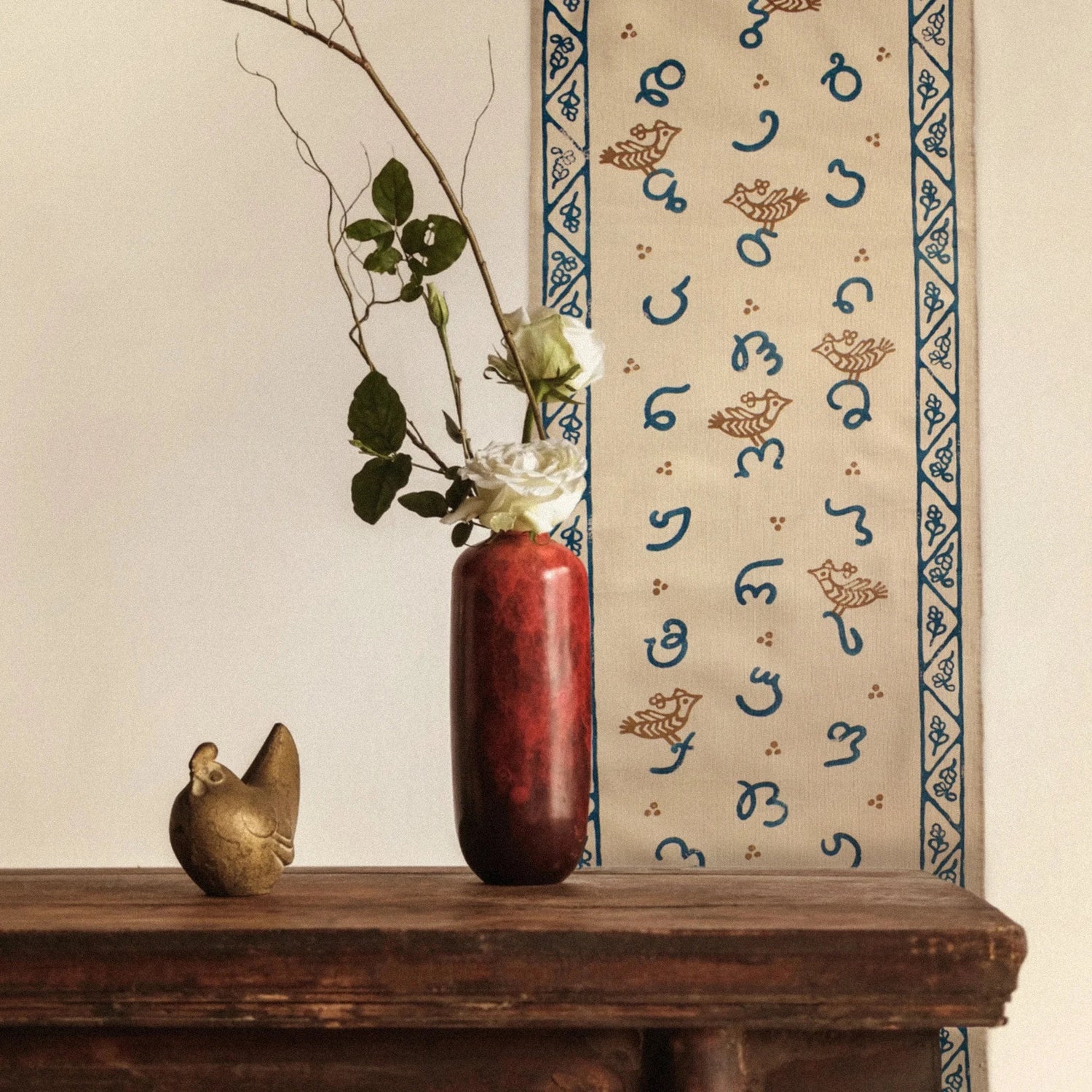 Block printed blue Scarf Adorned with "Flowers of Iphrari" stunning ornaments