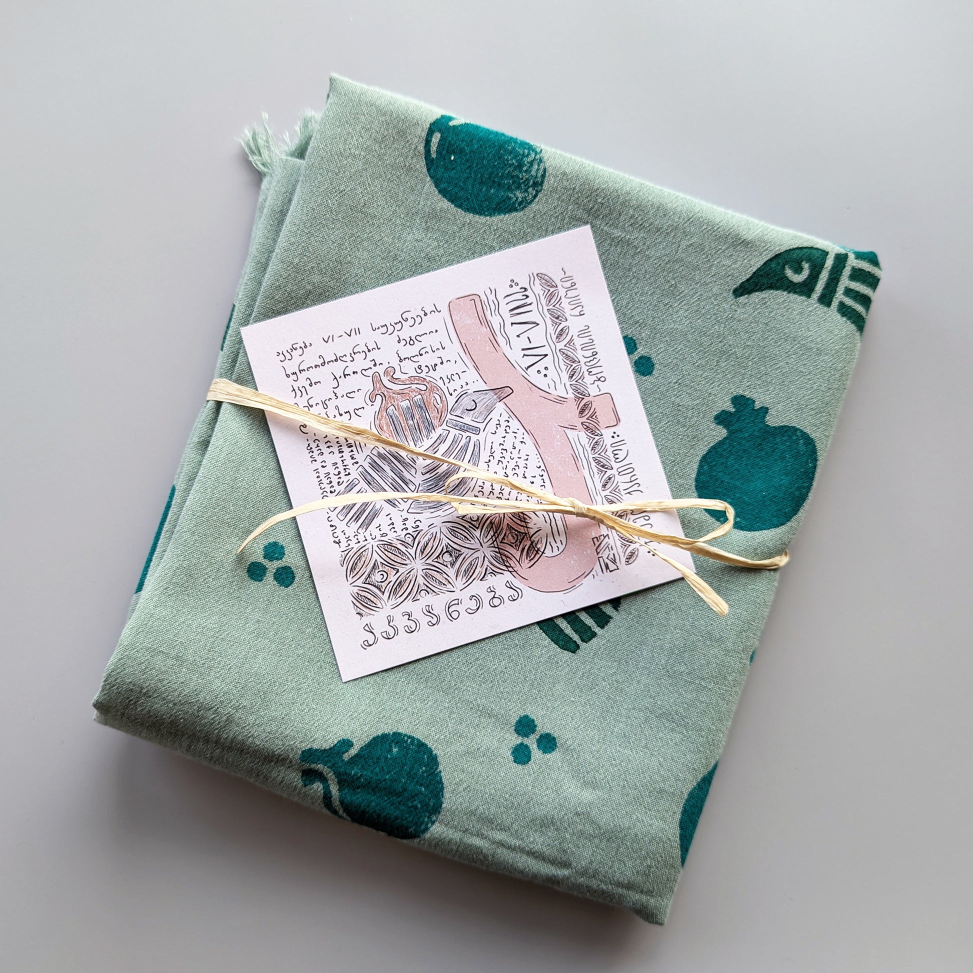 Our aim is to discover and use Ancient Georgian Symbols in modern way, not losing it's meaning. We are trying to keep the tradition alive by making handcarved blocks and printing ornaments on fabric. So all our work is handmade and  unique in its own way.